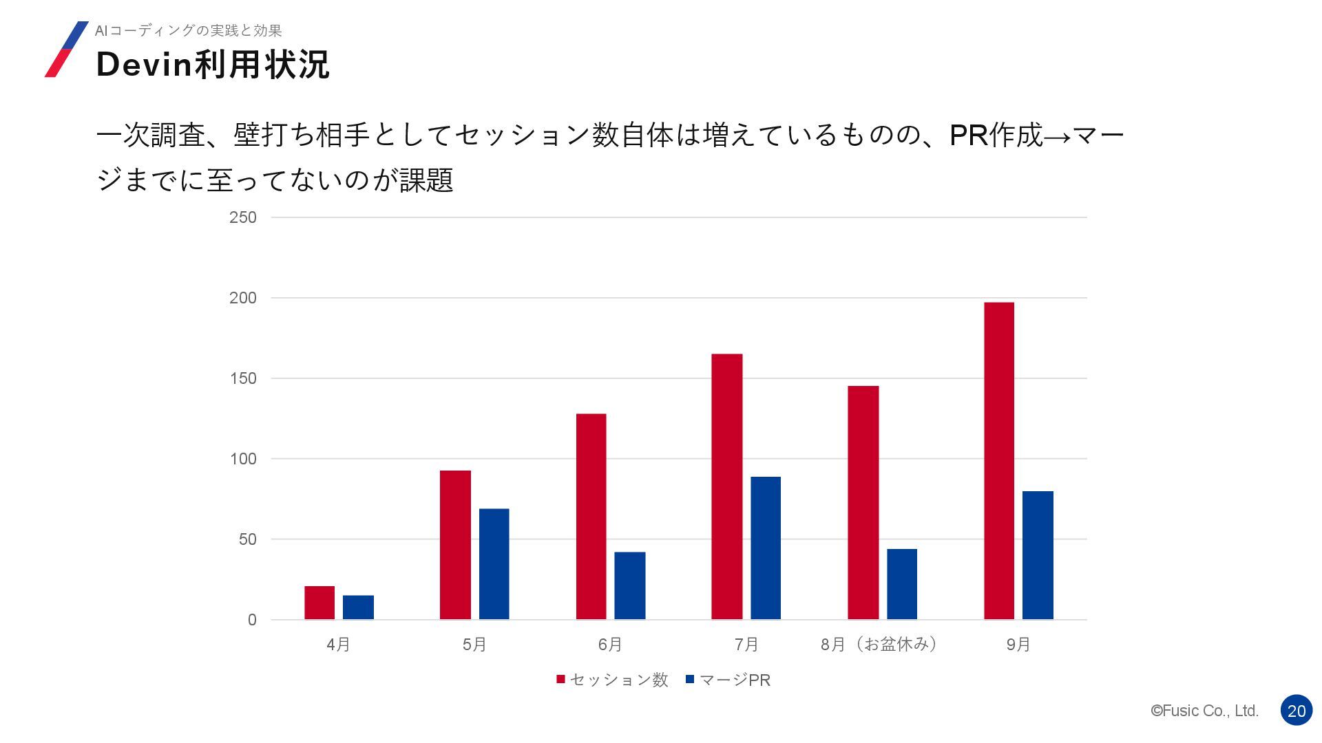 ©Fusic Co., Ltd. 20 Devin利用状況 AIコーディングの実践と効果 0 50 100 150