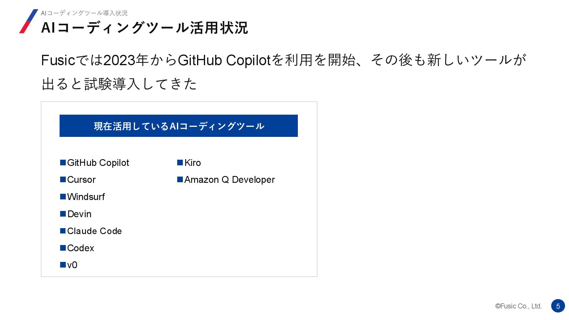 ©Fusic Co., Ltd. 4 AIコーディングツール導入状況 1