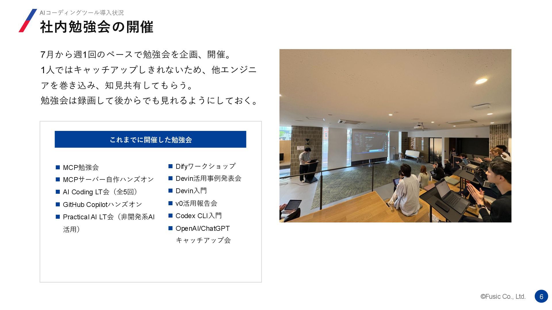 ©Fusic Co., Ltd. 6 社内勉強会の開催 AIコーディングツール導入状況 ◼ MCP勉強会 ◼ MCPサーバー自作ハンズオン