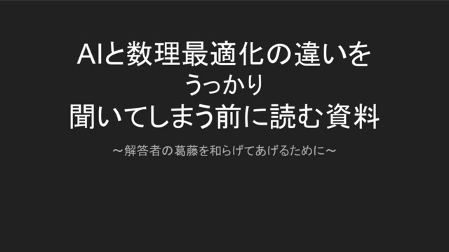 AIと数理最適化の違いを うっかり 聞いてしまう前に読む資料 ~解答者の葛藤を和らげてあげるために~