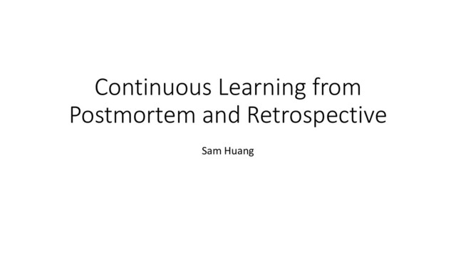 Continuous Learning from Postmortem and Retrospective Sam Huang