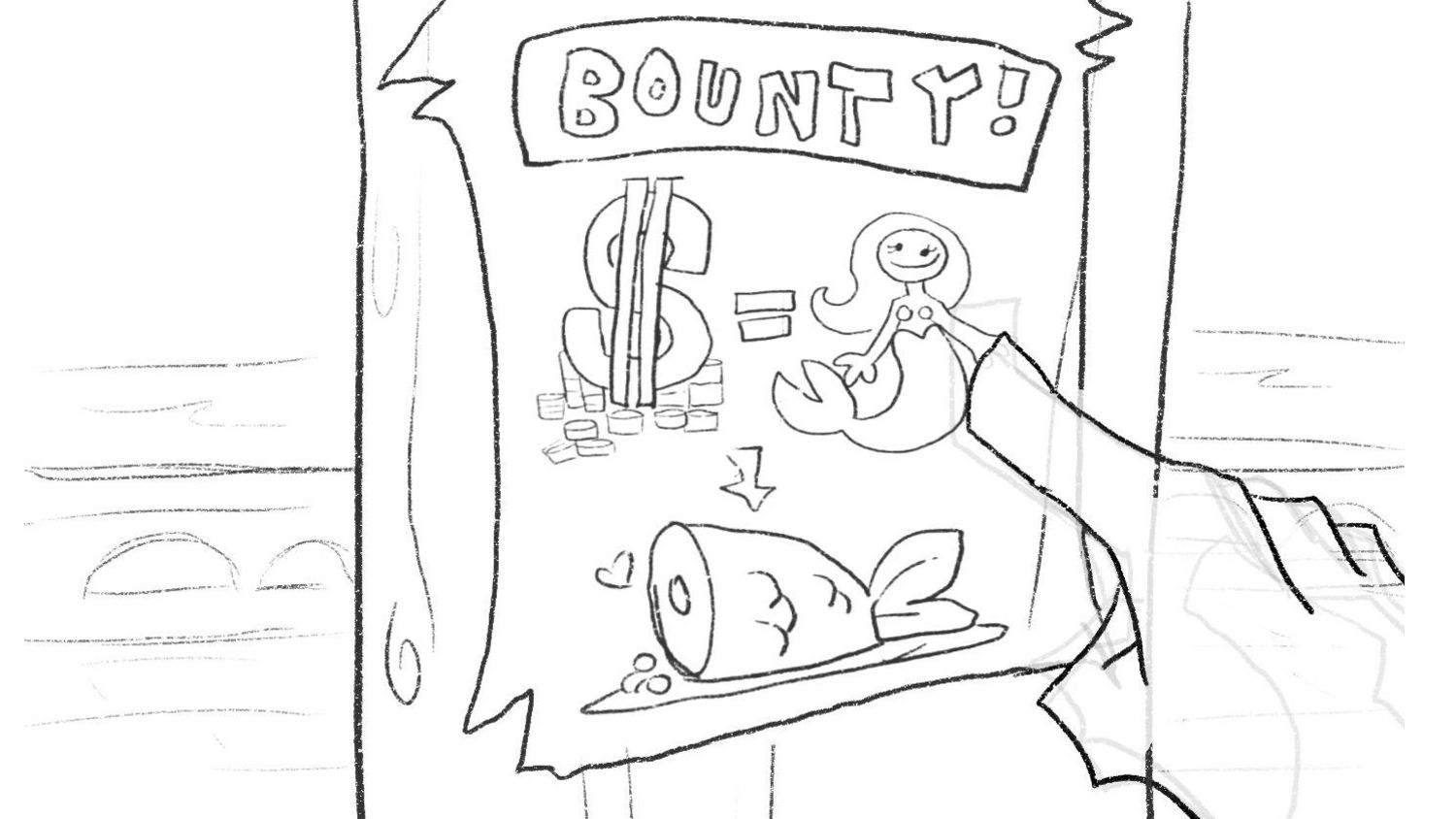 Story board for Bounty, the tale of a pirate who’s first mission is to capture a mermaid