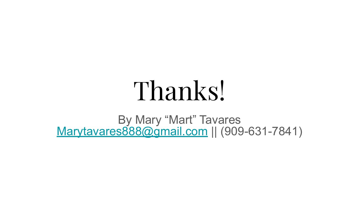 Thanks! By Mary “Mart” Tavares