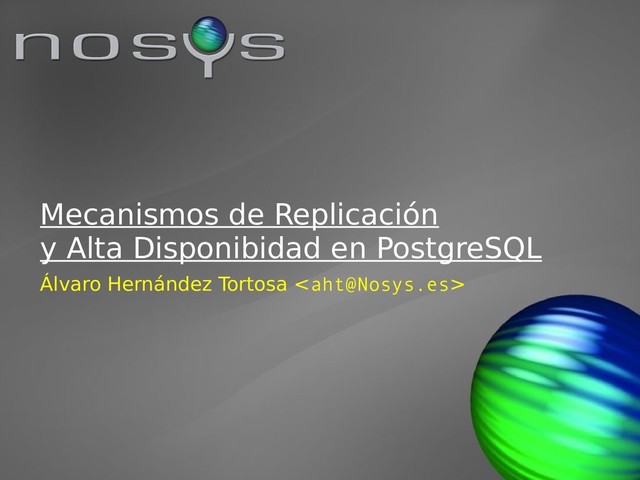 y Director Técnico en NOSYS • ¿Qué hacemos en NOSYS? ✔ Formación, consultoría y desarrollo de software con PostgreSQL (y Java) ✔ Partners de EnterpriseDB ✔ Formación avanzada en Java con Javaspecialists.eu: Java Master Course y Java Concurrency Course ✔ Partners de Amazon AWS. Formación y consultoría en AWS • Twitter: @ahachete • LinkedIn: http://es.linkedin.com/in/alvarohernandeztortosa/