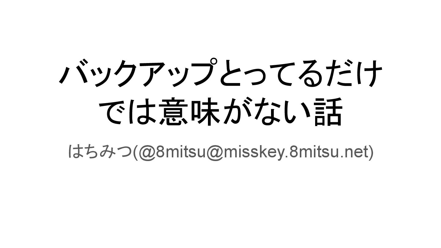 バックアップとってるだけ では意味がない話 はちみつ(@