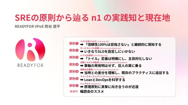 SREの原則から辿る n1 の実践知と現在地