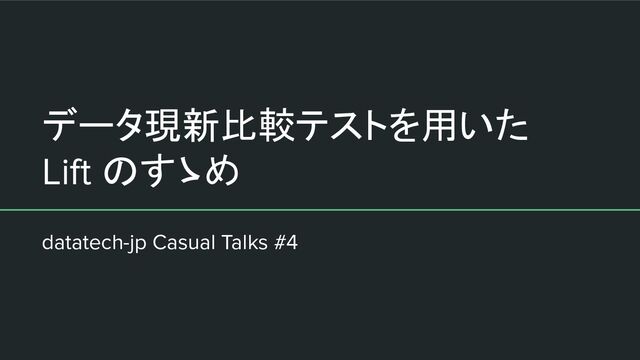 [渡したい引数] %} {% for arg in args %} {% set query %} WITH a AS ( 比較クエリ ), b AS ( 比較クエリ ), a_intersect_b AS (SELECT * FROM a INTERSECT DISTINCT SELECT * FROM b ), a_except_b AS (SELECT * FROM a EXCEPT DISTINCT SELECT * FROM b ), b_except_a AS (SELECT * FROM b EXCEPT DISTINCT SELECT * FROM a ), {# all_records AS ( SELECT *, TRUE AS in_a, TRUE AS in_b FROM a_intersect_b UNION ALL SELECT *, TRUE AS in_a, FALSE AS in_b FROM a_except_b UNION ALL SELECT *, FALSE AS in_a, TRUE AS in_b FROM b_except_a ), summary_stats AS ( SELECT in_a, in_b, COUNT(*) AS count FROM all_records GROUP BY 1,2 ) SELECT *, ROUND(100.0 * count / SUM(count) OVER (), 2) AS percent_of_total FROM summary_stats ORDER BY in_a DESC, in_b DESC #} all_records AS ( SELECT "a_intersect_b" as name, *, TRUE AS in_a, TRUE AS in_b FROM a_intersect_b UNION ALL SELECT "a_except_b" as name, *, TRUE AS in_a, FALSE AS in_b FROM a_except_b UNION ALL SELECT "b_except_a" as name, *, FALSE AS in_a, TRUE AS in_b FROM b_except_a ) select * from all_records {% endset %} {% do querys.append(query) %} {% endfor %} {{ return(querys) }} {% endmacro %} {% macro test_sample() %} {%- set ns = namespace() -%} {%- set ns.all = 0 -%} {%- set ns.error = 0 -%} {%- set ns.success = 0 -%} {%- set ns.empty = 0 -%} {%- set ns.a_except_b = 0 -%} {%- set ns.b_except_a = 0 -%} {%- set ns.no_problem = 0 -%} {%- set ns.problem = 0 -%} {%- set ns.dict_a_except_b = {} -%} {%- set ns.dict_b_except_a = {} -%} {{ log('テスト開始', true) }} {% for query in get_query() %} {%- set ns.all = ns.all + 1 -%} {% set results = run_query(query) %} {% if not results.rows[0] %} {# {{ log("戻り値なし---------------------", true) }} #} {%- set ns.empty = ns.empty + 1 -%} {% else %} {% for row in results.rows %} {% if row[0] == "a_except_b" %} {%- set ns.a_except_b = ns.a_except_b + 1 -%} {%- set id = row[1] -%} {%- do ns.dict_a_except_b.update({id:[row[2], row[3], row[4], row[5],row[6]]}) -%} {% elif row[0] == "b_except_a" %} {%- set ns.b_except_a = ns.b_except_a + 1 -%} {%- set id = row[1] -%} {%- do ns.dict_b_except_a.update({id:[row[2], row[3], row[4], row[5],row[6]]}) -%} {% else %} {%- set ns.success = ns.success + 1 -%} {% endif %} {% endfor %} {% endif %} {% endfor %} {% if ns.a_except_b == ns.b_except_a %} {% for k,v in ns.dict_a_except_b.items() %} {% if ns.dict_b_except_a[k][0] - v[0] <= 0.1 and ns.dict_b_except_a[k][1] - v[1] <= 0.1 and ns.dict_b_except_a[k][2] - v[2] <= 0.1 and ns.dict_b_except_a[k][3] - v[3] <= 0.1 and ns.dict_b_except_a[k][4] - v[4] <= 0.1 %} {%- set ns.no_problem = ns.no_problem + 1 -%} {% else %} {%- set ns.problem = ns.problem + 1 -%} {% endif %} {% endfor %} {% else %} {%- set ns.problem = ns.problem + 1 -%} {{ log('a_except_b と ns.b_except_a の不一致数が同じではないので、クエリの見直しをしてください。', true) }} {% endif %} {% set message %} テスト終了(test_{{ arg_target_month }}_3_atinsight_tvf_grows_sales_merchant_site) a_intersect_b[{{ ns.success }}] : a_except_b[{{ ns.a_except_b }}] : b_except_a[{{ ns.b_except_a }}] : empty[{{ ns.empty }}] 詳細 ::: 問題なし(カラムのいずれかに四捨五入誤差あり**それ以外の値は全て一致**)[{{ ns.no_problem }}] 問題あり(調査しましょう)[{{ ns.problem }}] {% endset %} {{ log(message, true) }} {% endmacro %} 実行は下記コマンドをshellで並列実行 *Liftのみで利用のため、実行環境は作り込みしない dbt run-operation test_sample & dbt run-operation test_sample1 & dbt run-operation test_sample2 & dbt-audit-helper を参考にクエリを作成 *取得データが用途によって異 なるため、dbt-audit-helperをそ のまま利用することができなかっ たです。 *マクロでテストができるので、 テストをすることが非常に楽にな りました。