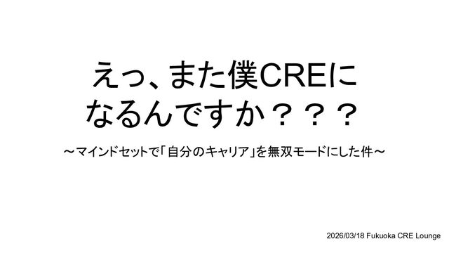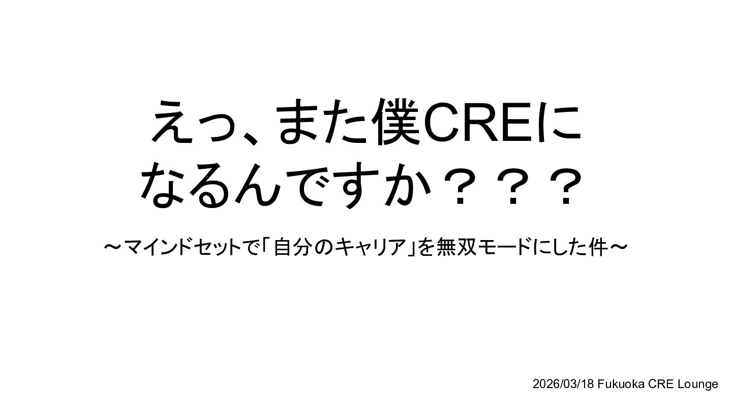 えっ、また僕CREに なるんですか??? 〜マインドセットで「自分のキャリア」を無双モードにした件〜 2026/03/18 Fukuoka CRE Lounge