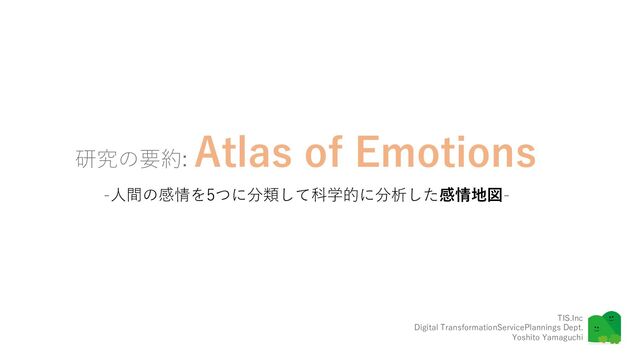 研究の要約: Atlas of Emotions TIS.Inc Digital TransformationServicePlannings Dept. Yoshito Yamaguchi