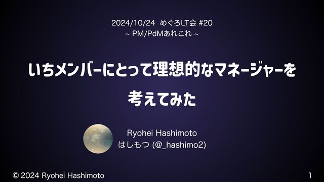 いちメンバーにとって理想的なマネージャーを 考えてみた Ί͙Ζ-5ձ d1.1E.͋Ε͜Εd 3ZPIFJ)BTIJNPUP ͭ͠ !@IBTIJNP 3ZPIFJ)BTIJNPUP