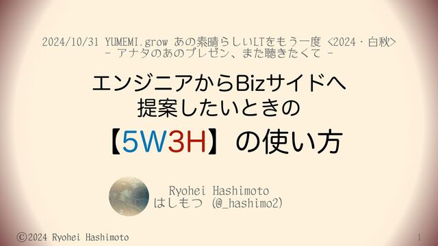 ʲ8)ʳͷ͍ํ 2024/10/31 YUMEMI.grow あの素晴らしいLTをもう一度 <2024・白秋> - アナタのあのプレゼン、また聴きたくて - Ryohei Hashimoto