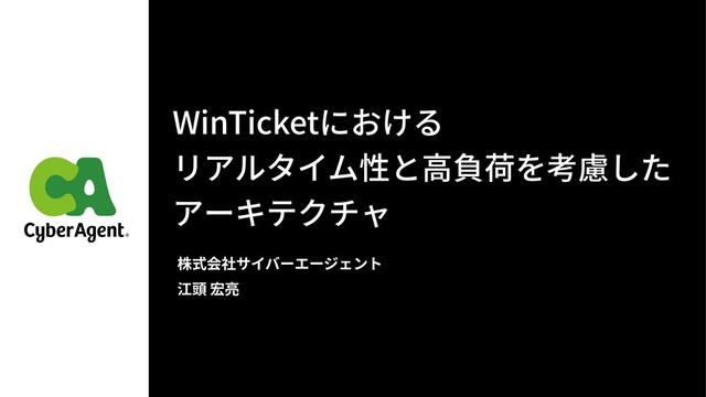 WinTicketにおける リアルタイム性と⾼負荷を考慮した アーキテクチャ 株式会社サイバーエージェント 江頭 宏亮