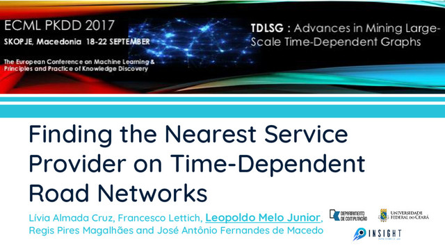 the TDNS problem to the fastest path problem. ◦ Application of candidate generation phase to quickly update POIs locations with negligible effects on the correctness. • Future Directions ◦ Improve the way candidate POIs are chosen. ◦ Solve the problem of computing a continuous version of the TDNS query. ◦ Investigate how we can compute TDNS queries over dynamic networks, where travel-time functions can be updated over time.