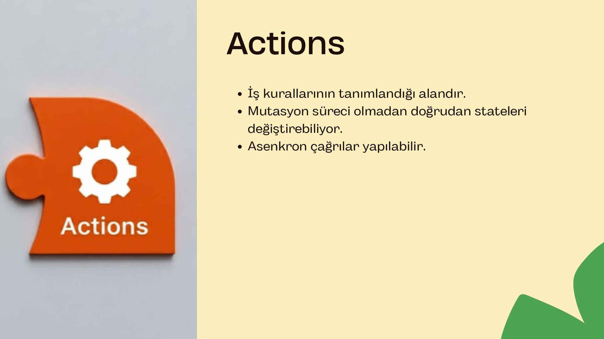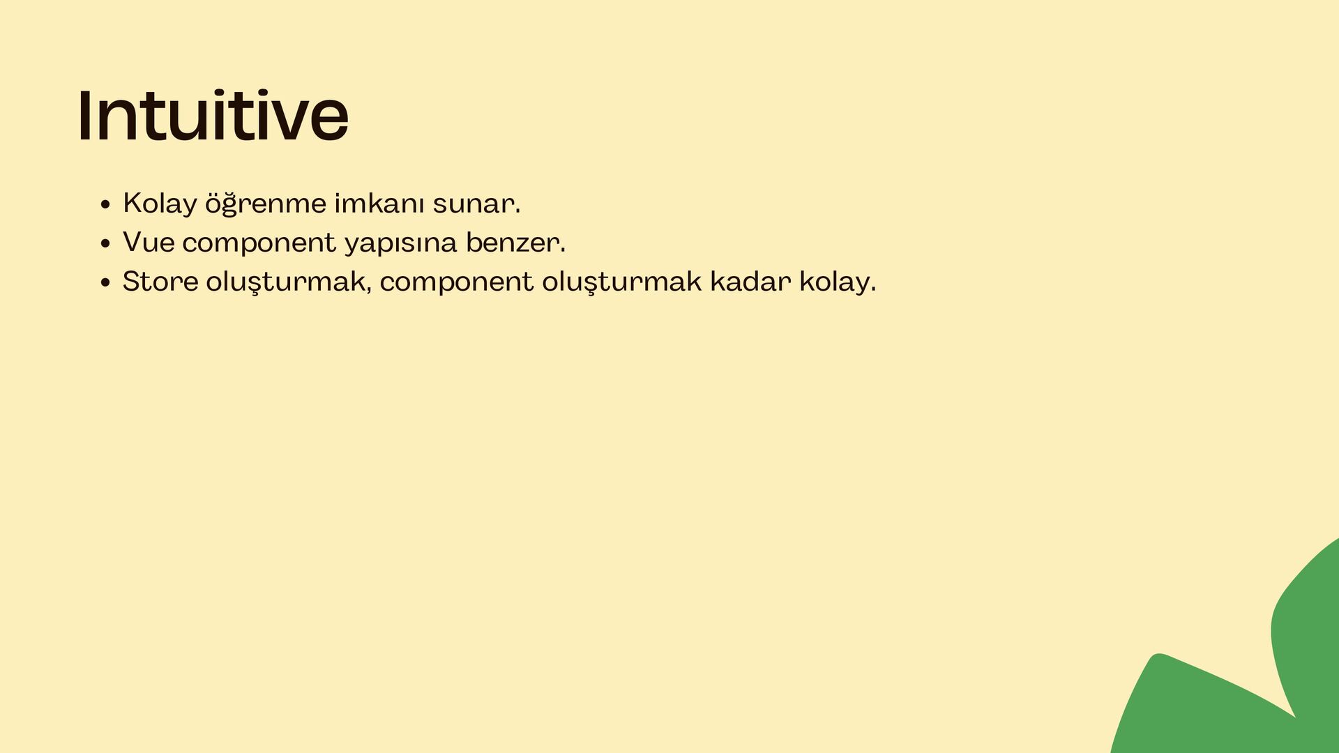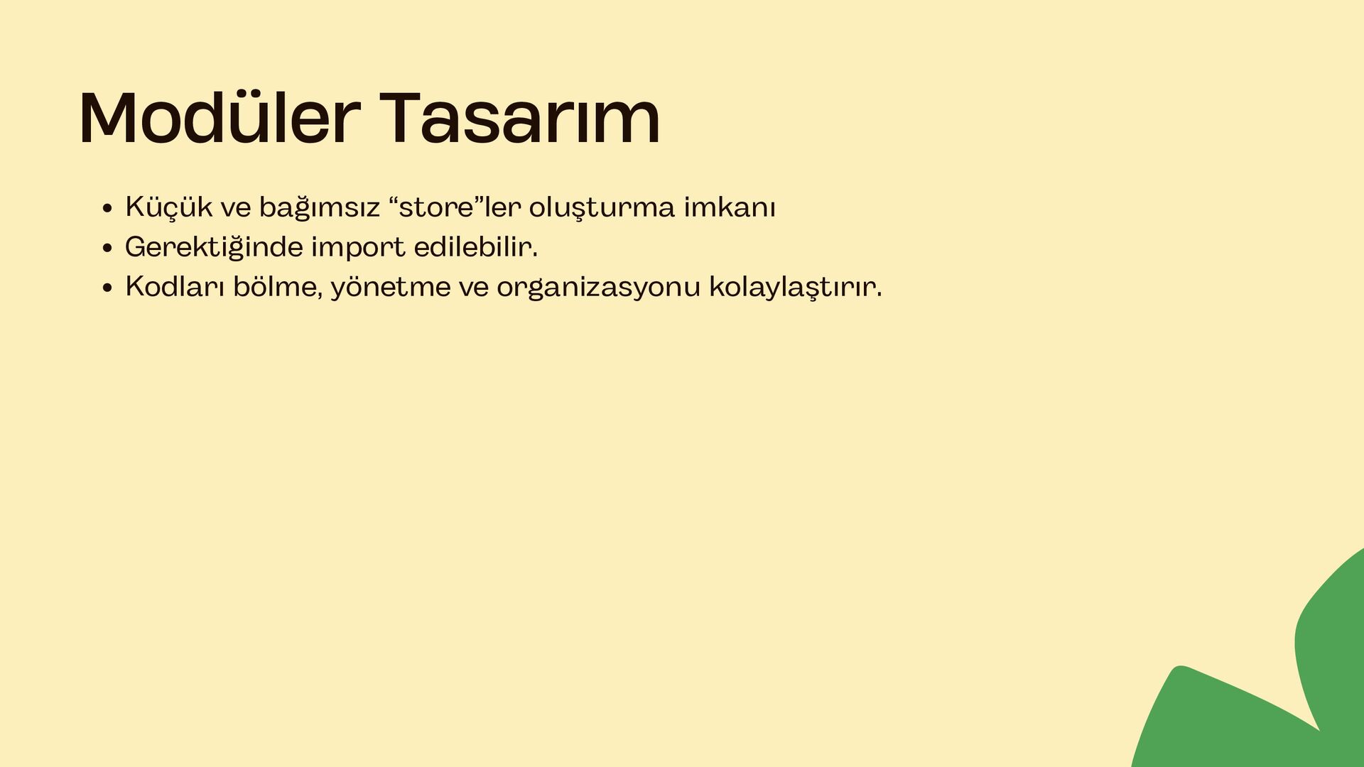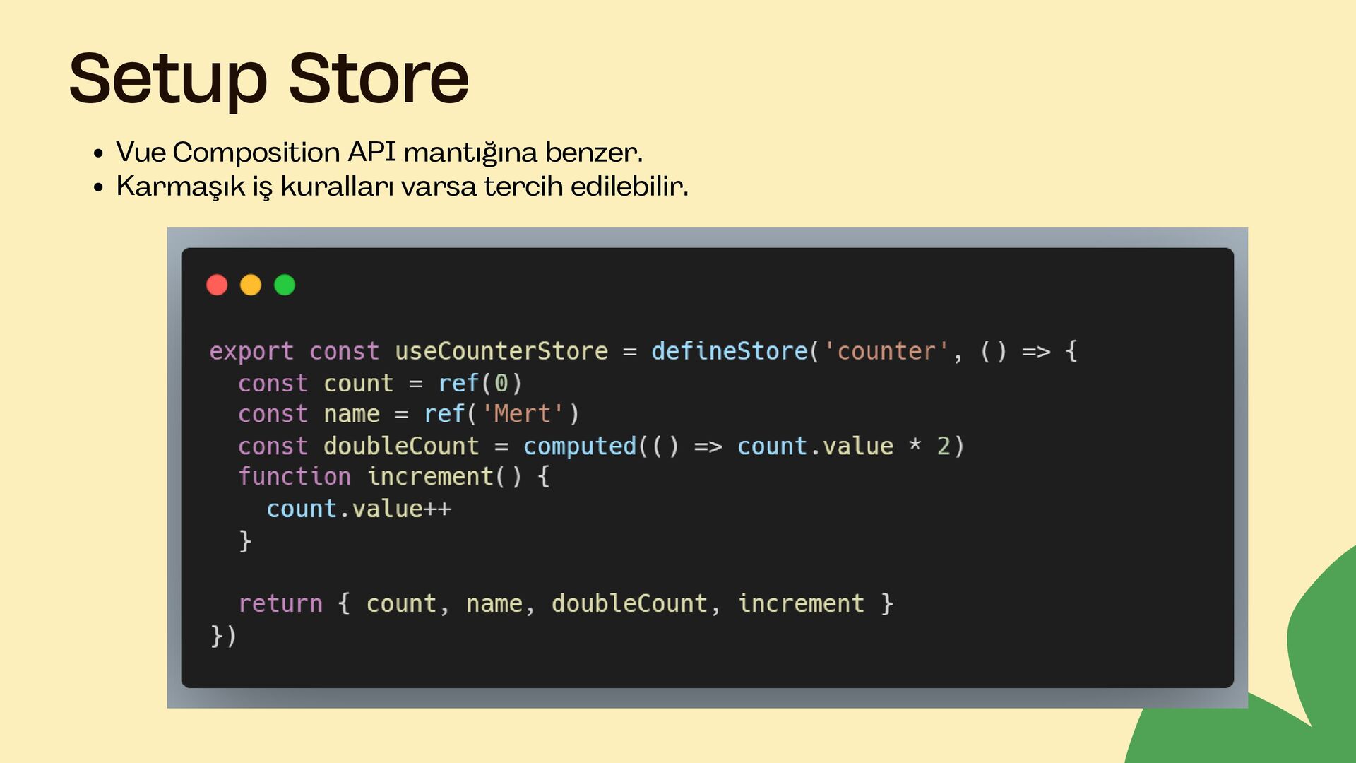 kullanmalısın. Daha modern, daha sade, Vue 3 ile uyumludur. Vuex kullanan bir projeyi hâlâ aktif geliştiriyorsan Yeni özellikler ekliyorsan, mimariyi yeniliyorsan Evet, Pinia'ya geçmeyi düşünebilirsin. Vuex kullanan bir projede sadece bakım yapıyorsan Yeni geliştirme neredeyse yoksa Hayır, Pinia'ya geçmen şart değil.
