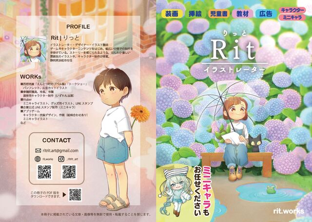 | Γͬͱ ΠϥετϨʔλʔɾσβΠφʔɾΠϥετߨࢣ ήʔϜΩϟϥΫλʔίϯςϯπΛ͡Ίɺ෯͍Ͱͷ੍࡞Λ खֻ͚͍ͯΔɻετʔϦʔΛײ͡ΒΕΔΑ͏ͳɺ΄ΜΘ͔༏͍͠ งғؾͷΠϥετɺΩϟϥΫλʔ੍࡞͕ಘҙɻ ੩Ԭݝদࢢࡏॅ WORKs ˙྄ኍʮ͑Μͱͭொͷϓϖϧలʯ ʮτʔΫγϣʔʯ ɹύϯϑϨοτɺࠂΧοτΠϥετ ˙ࢀٞӃٞһɺࢢɺࢢٞ ɹબڍ༻ΩϟϥΫλʔ੍࡞ʢ͍ͣΕબʣ ˙7UVCFS ɹϛχΩϟϥΠϥετɺάοζ༻Πϥετɺ-*/& ελϯϓ ˙اۀެࣜ -*/& ελϯϓ੍࡞ʢϛχΩϟϥʣ ˙ΞϓϦήʔϜ ɹΩϟϥΫλʔҥσβΠϯɺ࡞ըʢֆฑ߹Θͤ͋Γʣ ɹϛχΩϟϥΠϥετ ͳͲ CONTACT SJUSJUBSU!HNBJMDPN SJUXPSLT खֻ͚͍ͯΔɻετʔϦʔΛײ͡ΒΕΔΑ͏ͳɺ΄ΜΘ͔༏͍͠ งғؾͷΠϥετɺΩϟϥΫλʔ੍࡞͕ಘҙɻ ੩Ԭݝদࢢࡏॅ ˙྄ኍʮ͑Μͱͭொͷϓϖϧలʯ ʮτʔΫγϣʔʯ ɹύϯϑϨοτɺࠂΧοτΠϥετ ɹબڍ༻ΩϟϥΫλʔ੍࡞ʢ͍ͣΕબʣ ɹϛχΩϟϥΠϥετɺάοζ༻Πϥετɺ-*/& ελϯϓ ˙اۀެࣜ -*/& ελϯϓ੍࡞ʢϛχΩϟϥʣ ɹΩϟϥΫλʔҥσβΠϯɺ࡞ըʢֆฑ߹Θͤ͋Γʣ CONTACT SJUSJUBSU!HNBJMDPN @SJUSJU@BSU 装画 挿絵 広告 教材 児童書 キャラクター ミニキャラ ຊࢠʹܝࡌ͞Ε͍ͯΔจষɾը૾ΛແஅͰ༻ɾసࡌ͢Δ͜ͱΛې͡·͢ɻ ͜ͷࢠͷ 1%' ൛Λ μϯϩʔυͰ͖·͢ɻ ⾣