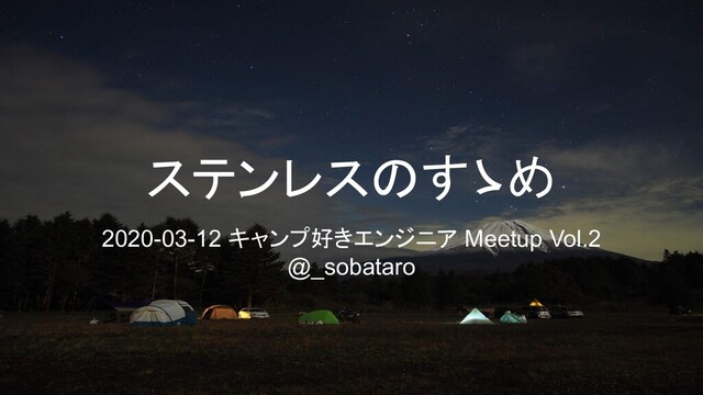 2020-03-12 キャンプ好きエンジニア Meetup Vol.2 - 私の『推しギア』教えます - においてお話したスライドです。 https://camping-engineer.connpass.com/event/167437/ https://www.youtube.com/watch?v=a98NXemzyFI&feature=youtu.be&t=1520