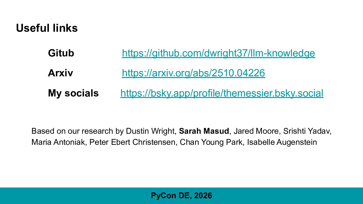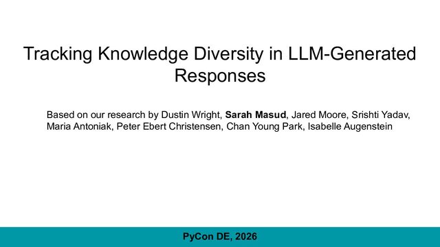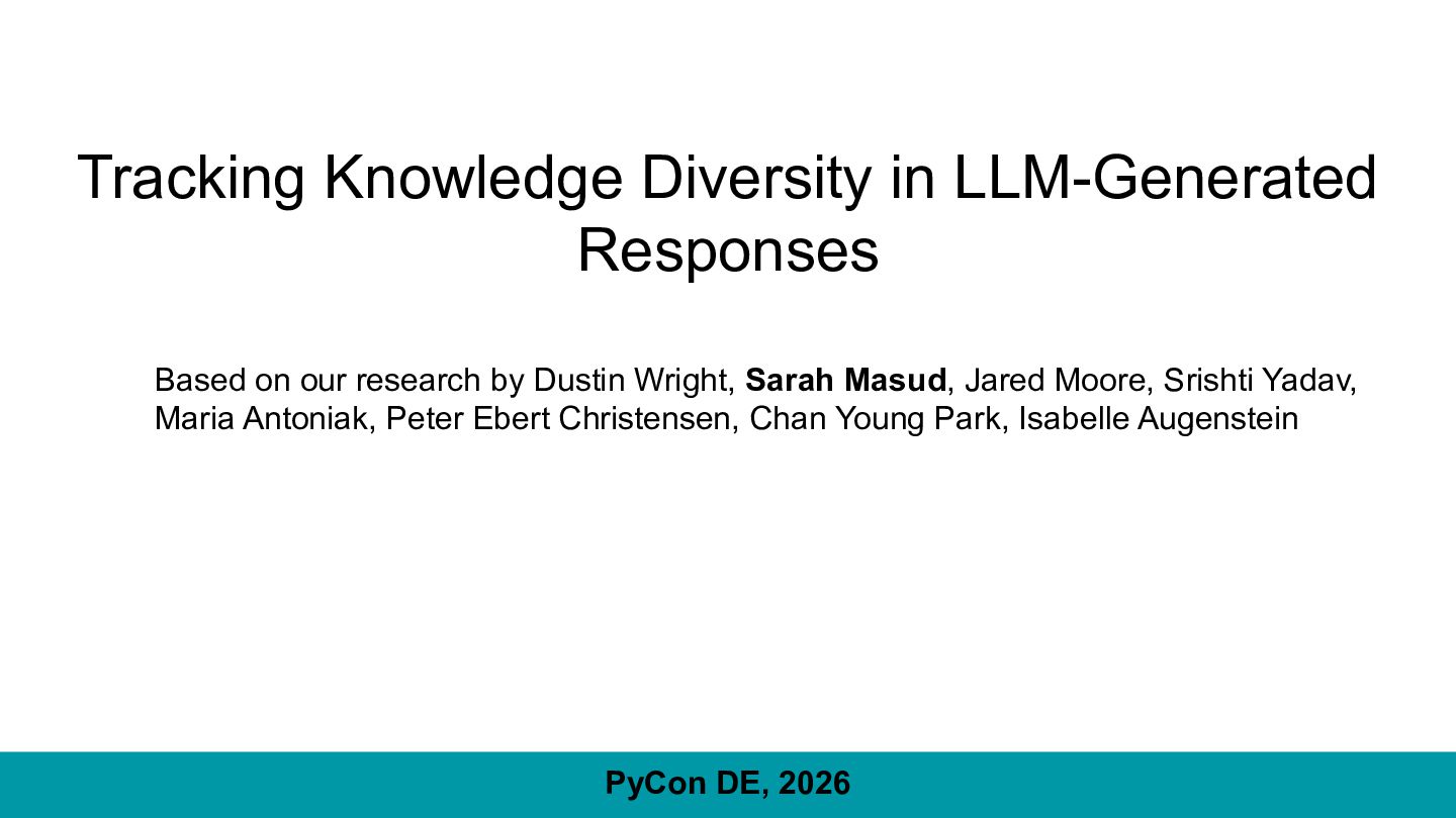 on our research by Dustin Wright, Sarah Masud, Jared Moore, Srishti Yadav, Maria Antoniak, Peter Ebert Christensen, Chan Young Park, Isabelle Augenstein PyCon DE, 2026