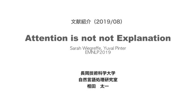 จݙհʢʣ Attention is not not Explanation Sarah Wiegreffe, Yuval Pinter