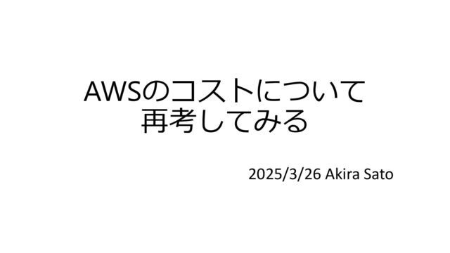 AWSのコストについて 再考してみる 2025/3/26 Akira Sato