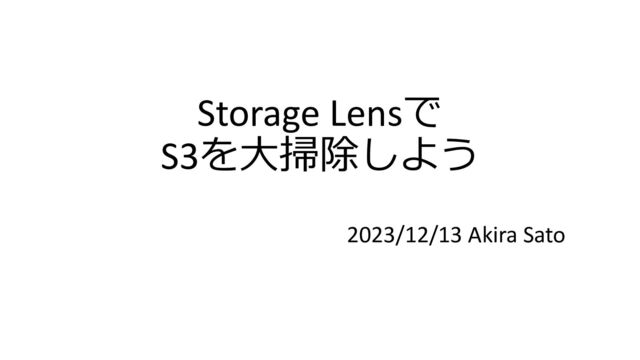 Storage Lensで S3を⼤掃除しよう 2023/12/13 Akira Sato