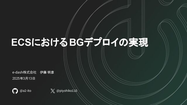 ECSにおけるBGデプロイの実現 e-dash株式会社 伊藤 明彦 2025年3月13日 @a2-ito @piyohiko110