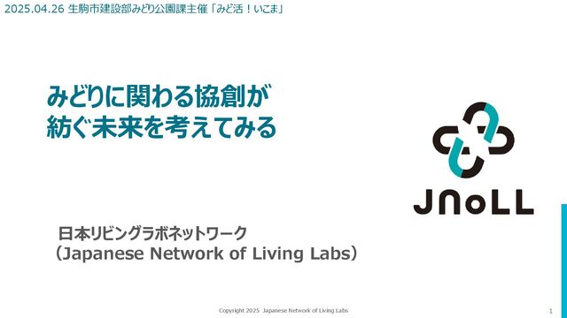 1 Copyright 2025 Japanese Network of Living Labs みどりに関わる協創が 紡ぐ未来を考えてみる