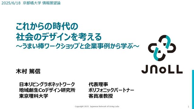 E.G., Campbell, D.F.J., 2009. “Mode 3″ and “Quadruple Helix”: toward a 21st century fractal innovation ecosystem. Int. J. Technol. Manag 46, 201. 4重螺旋モデル:Quadruple Helix Model モノ・コトをつくるときに 生活者と行政・企業・大学が共に 暮らしの場(リビング)において 試行錯誤(ラボ)をする活動・場 (人口減少時代の社会課題解決に必要な方法論 ≒コレクティブ・インパクト) デンマークのスマートシティ研 究者とともに、日本初のリビン グラボ書籍(教科書)を刊 行。全国30カ所で対話イベ ント実施予定。 千葉工業大学(情報学部・デザイン学部) 関西学院大学(イノベーション研究会) 官民共創HUB×東京大学(産官学民関係者) 徳島県神山町(地域創生関係者)