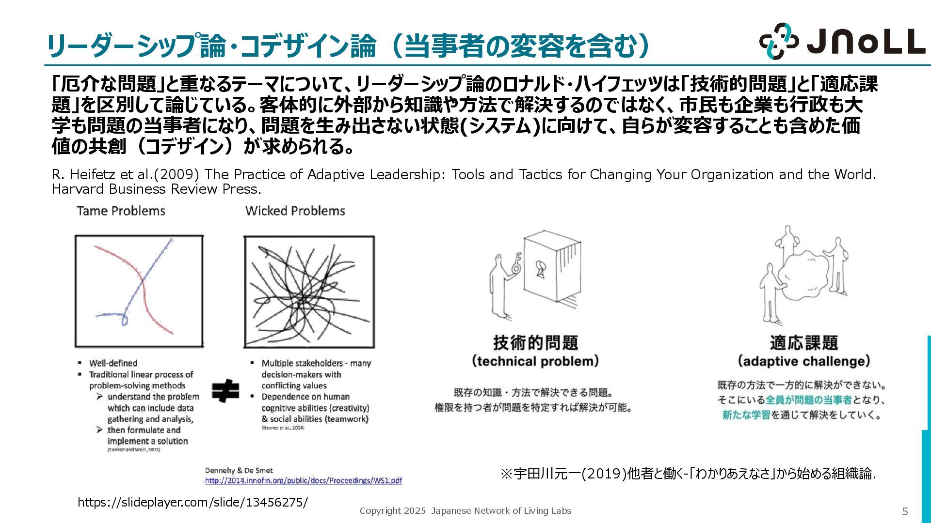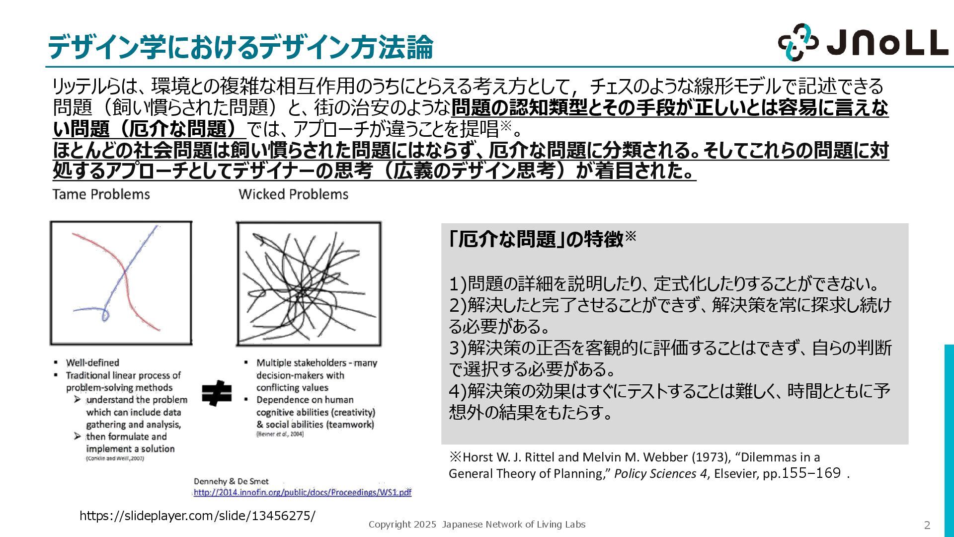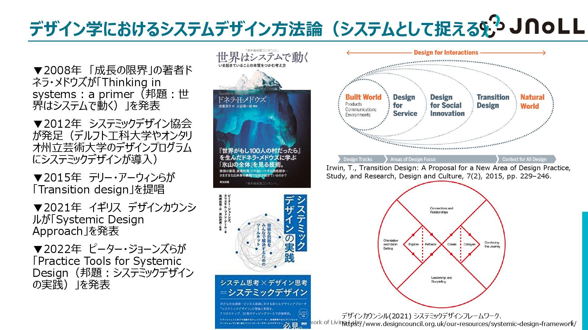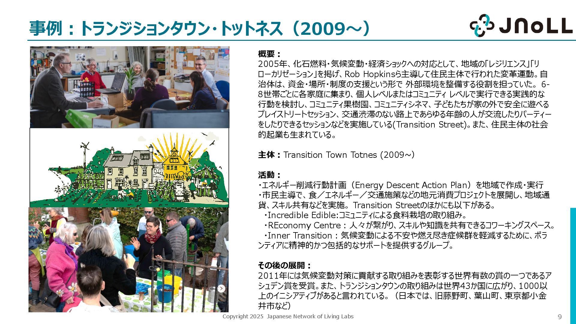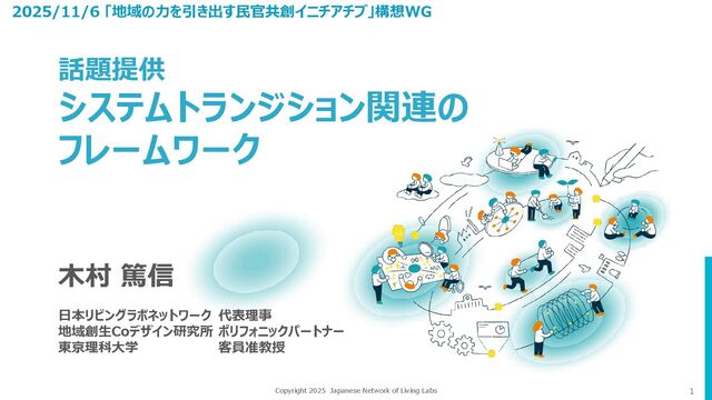 Multi-level Perspective(MLP)に対して、具体的に現実社会で新たな技術や仕組みを試験的に実践 し,介入・学習・改良を重ねるアプローチとして、トランジションマネジメント方法論(initiative-based learning)が研究・実践されている。 WSベースの共通のアジェンダ設 定に実効性が乏しい アジェンダ作成後に関係者エン ゲージメントを⾼めるのが難しい 予期的なマネジメントスタイルで はプロジェクトが停滞してしまう トランジションマネジメント方法論 (initiative-based learning)の課題 ※Frantzeskaki, N., Bach, M., Holscher, K., and Avelino, F., (Eds), (2015), Urban Transition Management, A reader on the theory and application of transition management in cities, DRIFT, Erasmus University Rotterdam with the SUSTAIN Project.