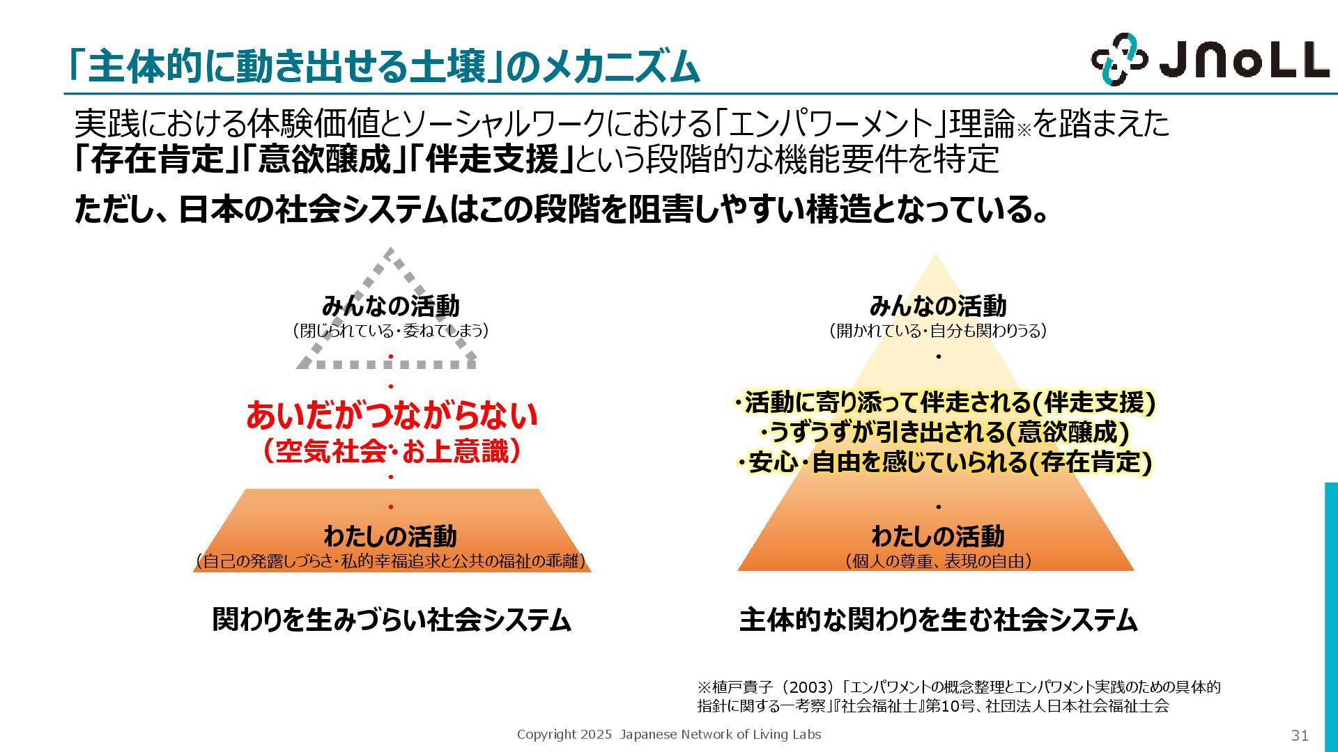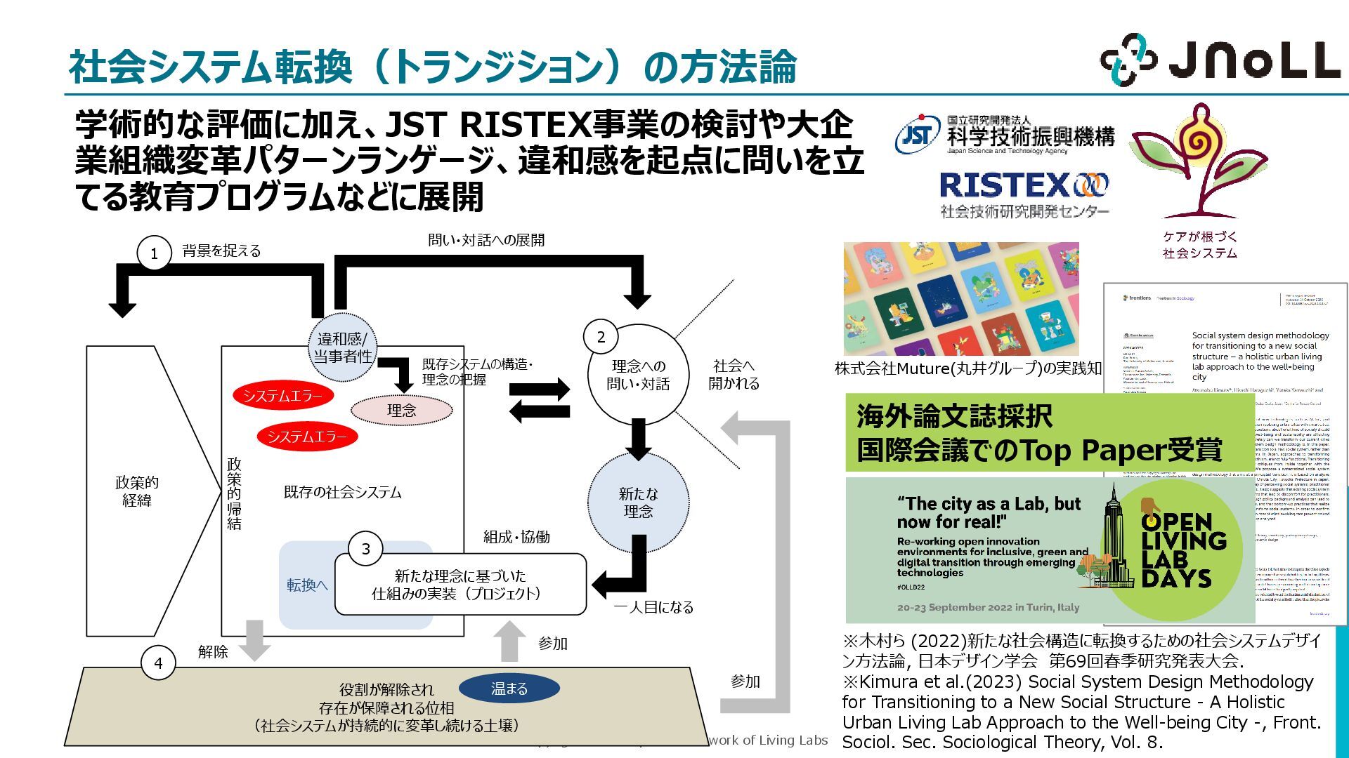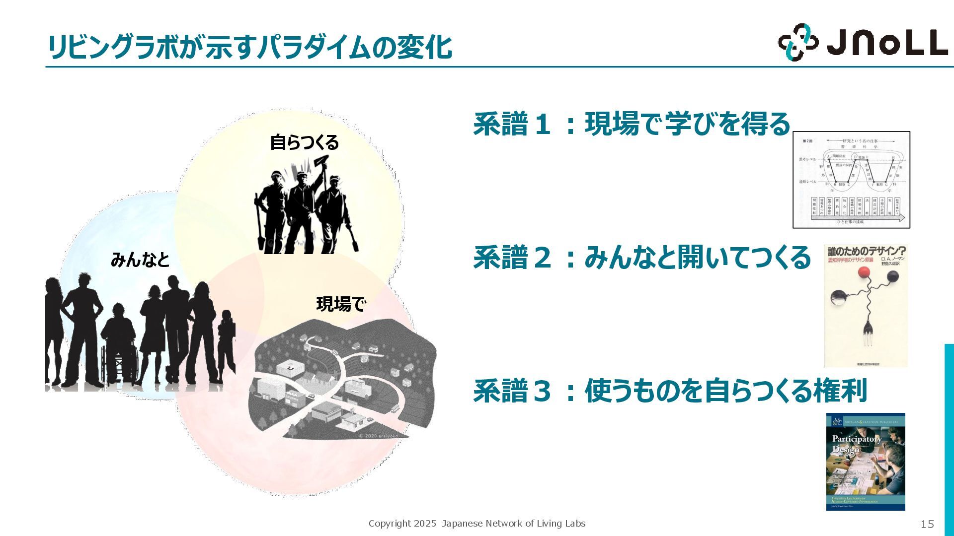 中央公論社. 1990年代から実験科学・市民科学の分野でLiving Labと名前の付い た活動が行われている • “The Living Lab is a pilot program teaching estuarine issues to junior and senior high school students.” (Short, 1992) • “The program has a room in the residence quarters of the YMCA called the ‘’Living Lab.” This laboratory is an opportunity for a youth to gain practical experience living on his or her own while receiving support from staff, DYFS and other agencies.” (State of New Jersey, 1993) • “From using the environment as a living lab to enhance your science and math studies to using it to help inspire your students to create poetry, there are many innovative ways to promote outdoor experiences with your students.” (Wood et. al., 1993) 実験科学[Lewin,1946;Kawakita,1967;Neisser,1978]や市民 科学[Short,1992;Wood,1993]の分野では、限定的な環境での試 行実験の限界に対して、アクションリサーチ、野外科学、PBLなどの実環 境での実践や検証が重要視された。 特徴 • 実環境下(real-life setting) • 生徒の巻き込み(student involvement) • エンパワーメント(empowerment)