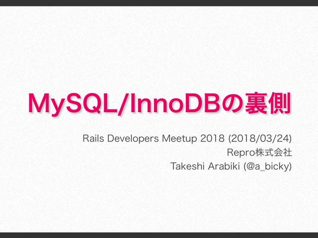 Rails Developers Meetup 2018: Day 1 (https://techplay.jp/event/639872) の発表資料です。 See also Rails Developers Meetup 2018 で「MySQL/InnoDB の裏側」を発表しました - あらびき日記 https://abicky.net/2018/03/25/141353/