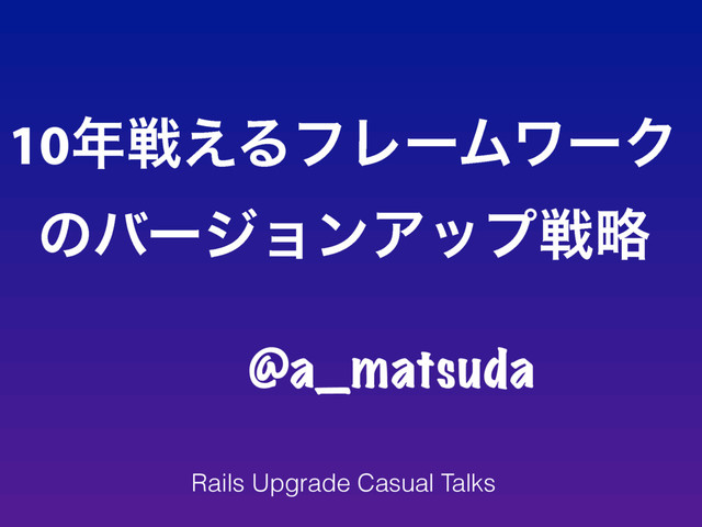 Rails Upgrade Casual Talks の基調講演「10年戦えるフレームワークのバージョンアップ戦略」の発表スライド https://cw-meetup.doorkeeper.jp/events/40728