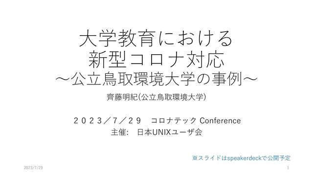 コロナテックカンファレンス 日本UNIXユーザ会主催 2023年7月29日