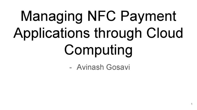 as it only requires downloadable applications for both retailers and customers. • Security of customer's credentials (e.g. bank account details) • In terms of flexibility and manageability, it makes the whole process much clearer and easier to handle. THE ROLE OF CLOUD COMPUTING WITHIN NFC ECOSYSTEM 13