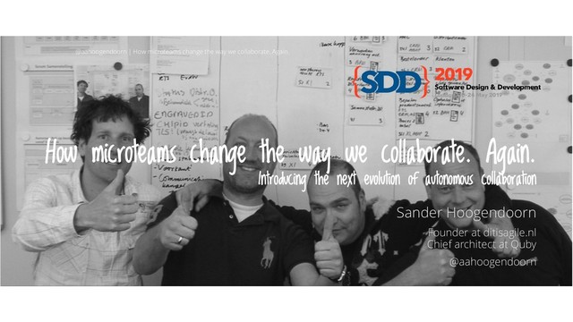 Sander has been experimenting with collaboration in teams for years and reasons about this next evolution of collaboration as areas, collectives, and microteams. This talk illustrates how organizations and teams doing software and product development can transition to focus on delivering value using the ever-evolving and self-organizing power of microteams and how to get there using a combination of models, such as Cynefin, the Golden Circle, innovation funnels and backlogs, autonomy, and fewer rules.