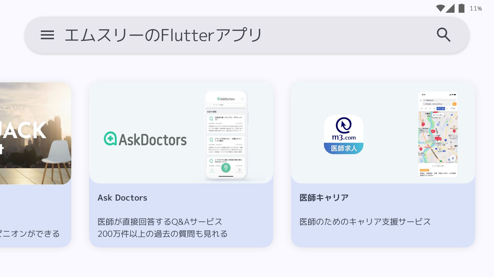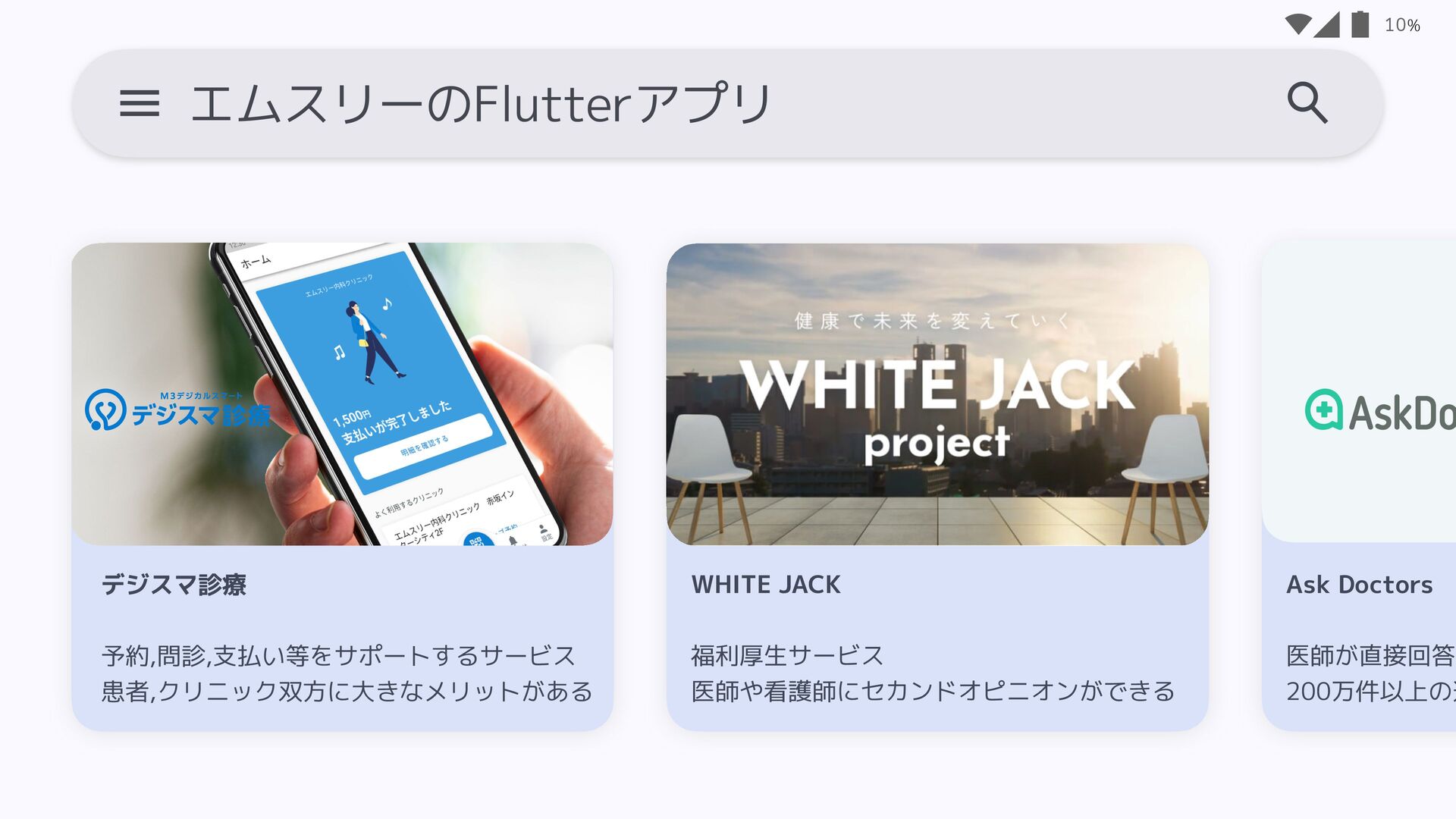 5. % エムスリーのFlutterアプリ 10 Ask Doctors 医師が直接回答す 200万件以上の過 WHITE JACK 福利厚生サービス