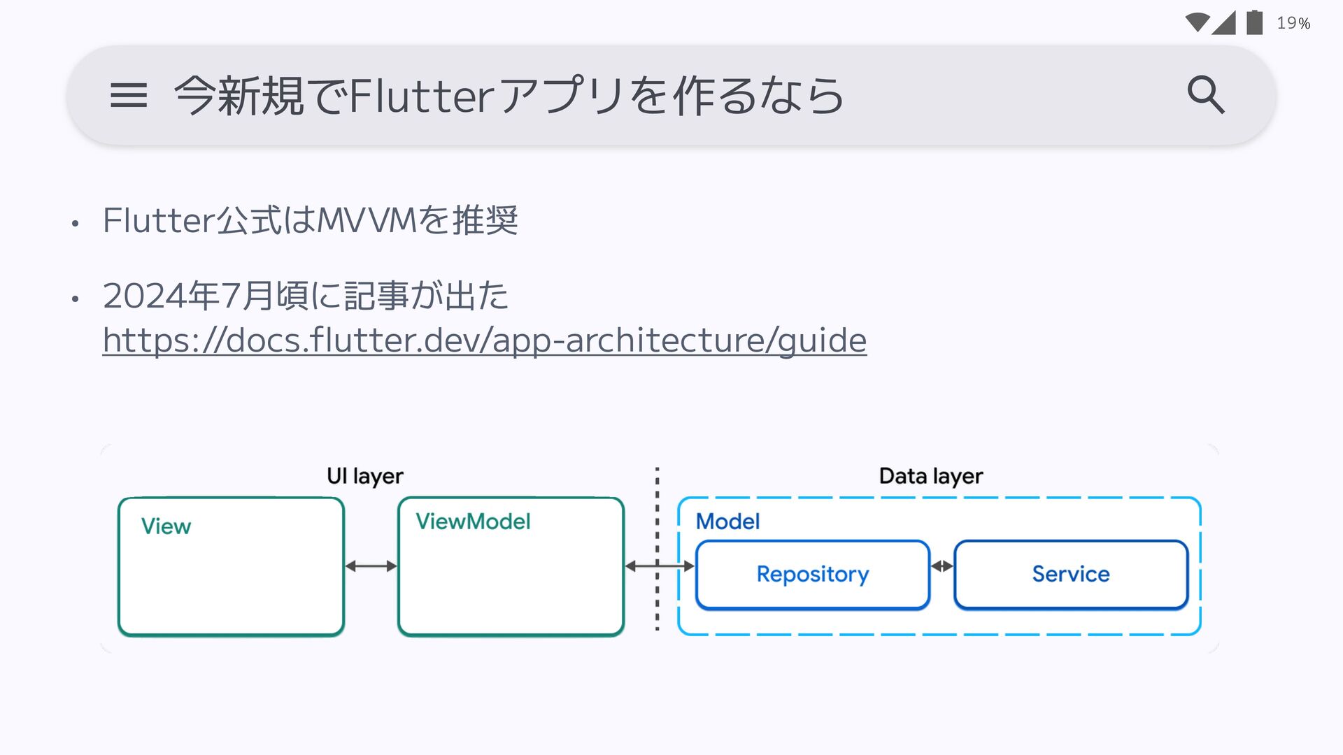 19. % • 2025年から新規で作るなら、(個人的には) hooks + riverpod • 2026年春くらい? = Riverpod
