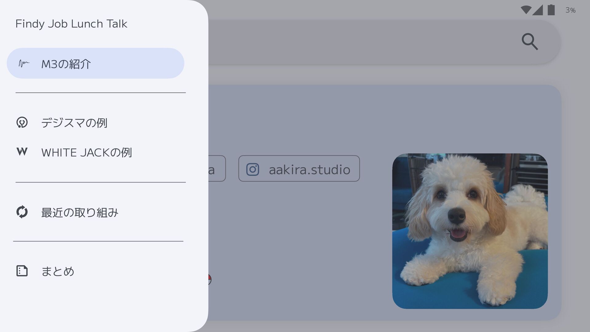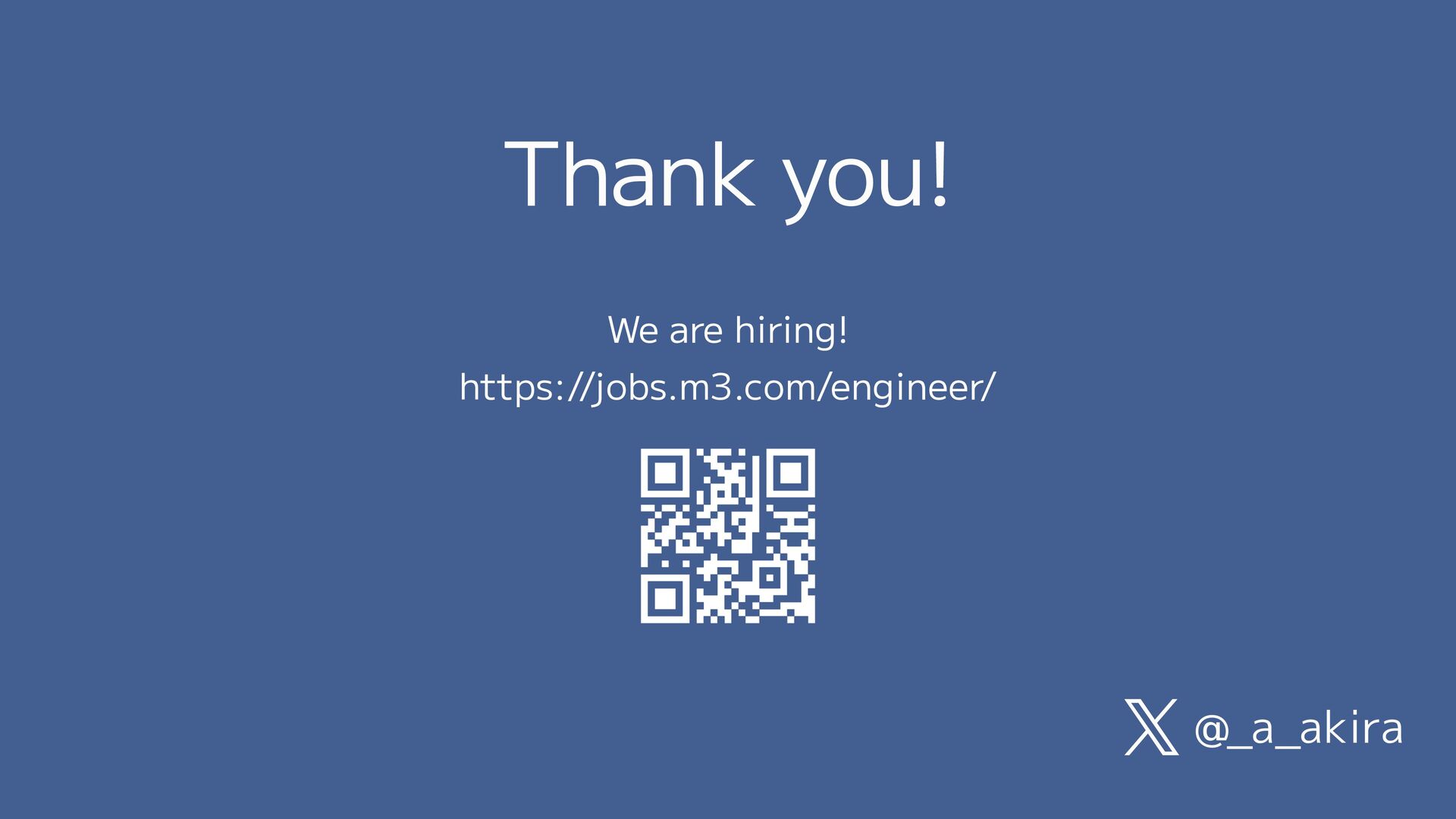 🤸 🚁🏠⊿ aakira.studio AAkira _a_akira M3, Inc. Akira Aratani まとめ 最近の取り組み WHITE JACKの例 デジスマの例 M3の紹介 Findy Job Lunch Talk