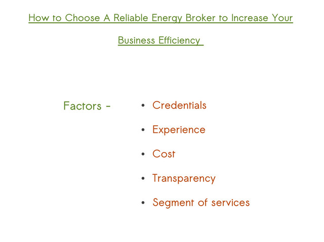 right experience, and he should be accomplished in both the industrial as well as domestic fields. Make sure he accustomed to every dimension of this field and can help you in securing the best supplier. You can read customer reviews and feedback about him to have a better knowledge. In addition, you can consult on him with your friends and family. They may prove helpful in guiding you on the right track. Cost Make sure you clear out all the fees and commission a broker will charge you in return for the services. Normally these consultants do not charge any fees from you and take the commission form the big electricity suppliers but still it is wise to clear all the things beforehand to get to know all the things of the process.