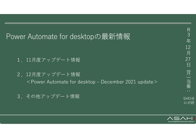 3.その他アップデート情報 R 3 年 12 月 27 日 ( 月 ) 当 番 : Power Automate for desktopの最新情報 SHO@ ロボ研