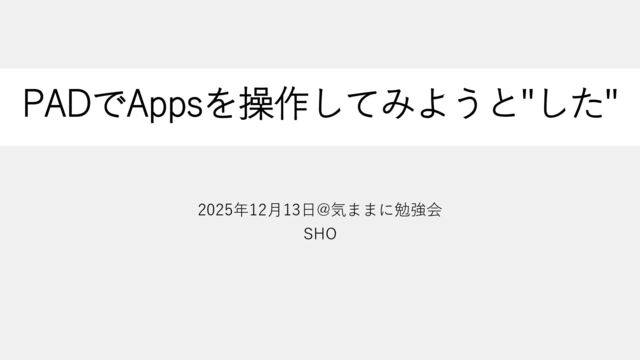 PADでAppsを操作してみようと"した" 2025年12月13日@気ままに勉強会 SHO