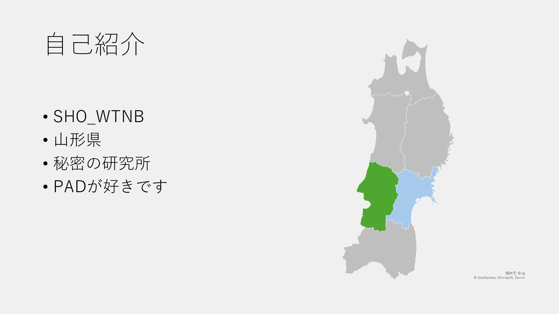 自己紹介 • SHO_WTNB • 山形県 • 秘密の研究所 • PADが好きです ©