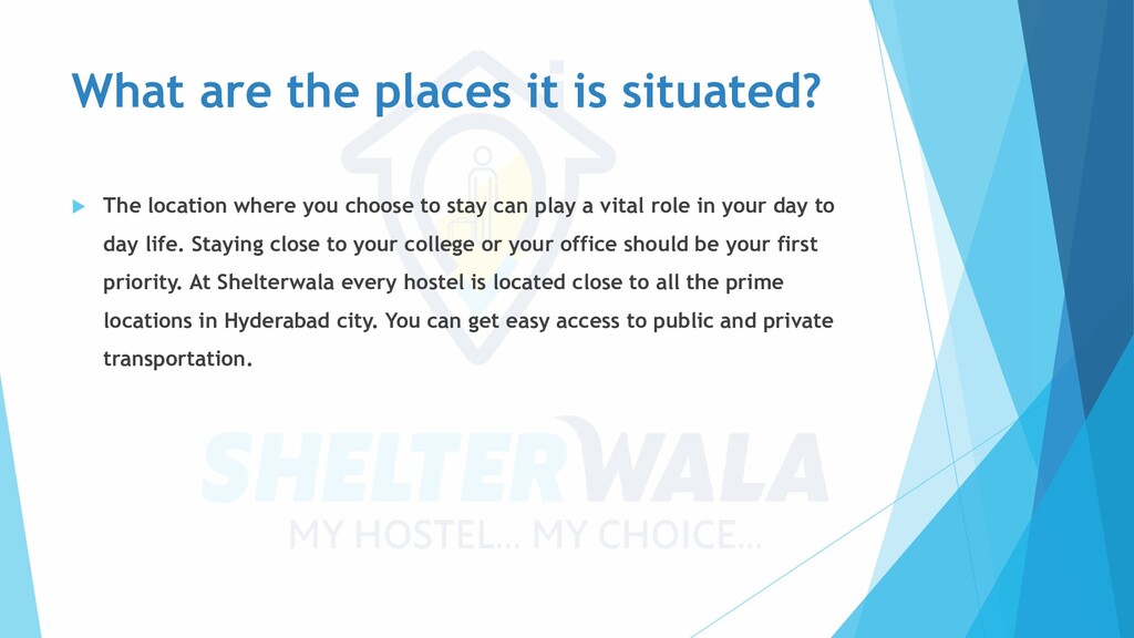 If you are looking for hostels in Gachibowli to stay then Shelterwala is the best option for you to choose. They do not ask for any security deposit, you can get accommodation for an affordable price effortlessly. Download the shelterwala app from your smartphone and start booking. https://www.shelterwala.com/
