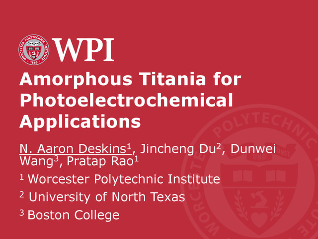 Gu, Y. Yan, J.L. Young, K.X. Steirer, N.R. Neale, J.A. Turner, Nat. Mater. 15 (2015) 456. • Y. Lin, R. Kapadia, J. Yang, M. Zheng, K. Chen, M. Hettick, et al., J. Phys. Chem. C. 119 (2015) 2308–2313. • J. Qiu, G. Zeng, M.-A. Ha, M. Ge, Y. Lin, M. Hettick, et al., Nano Lett. (2015) 150814112530005. • J. Qiu, G. Zeng, M. Ge, S. Arab, M. Mecklenburg, B. Hou, et al., J. Catal. 337 (2016) 133–137. • C. Das, M. Tallarida, D. Schmeisser, Nanoscale. (2015) 7726–7733. • Etc., Etc. 5 Narrow band p-type semiconductors: Si, InP, GaAs, GaInP2 , etc. p-type Narrow Band Semiconductor Amorphous Titania