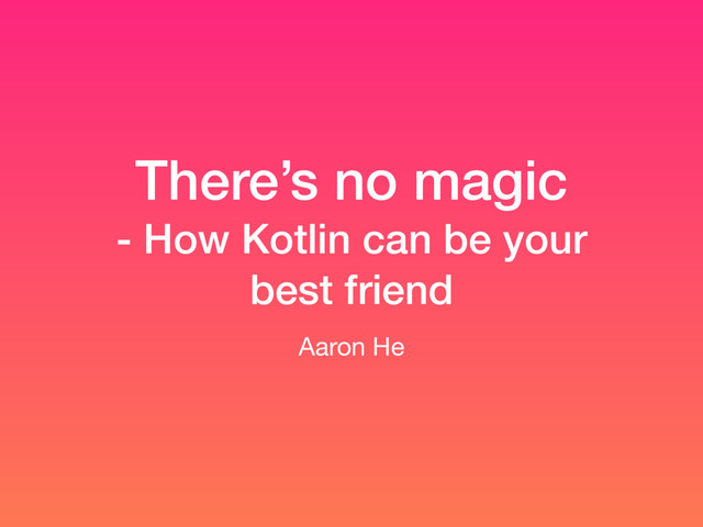 Kotlin finally got official support from Google. While a lot of people are cheering, some are hesitating. Should I use it in production? What are all those fancy features? How is Kotlin able to do that? In this talk, I'll share my experience with Kotlin and go a little bit in detail on what Kotlin is doing under the hood.