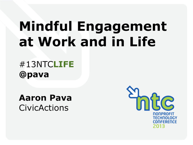 Presentation by Aaron Pava (@pava) on April 11, 2013 at the 2013 NTEN Non-Profit Technology Conference (NTC)