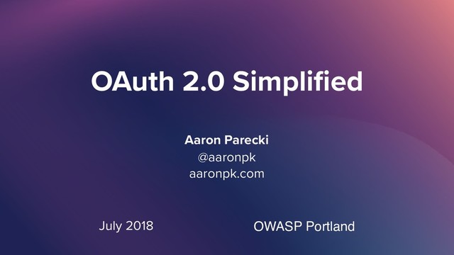 Aaron Parecki @aaronpk aaronpk.com OAuth 2.0 Simplified OWASP Portland July 2018