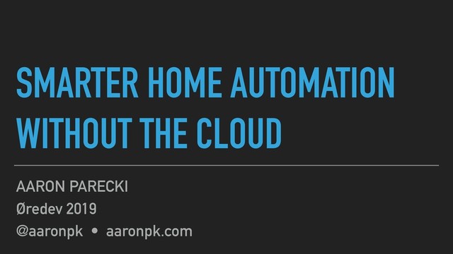 In this talk we'll look at how to set up a home automation system that runs entirely locally, and takes into account additional context-aware inputs so that you don't accidentally turn on the lights in the middle of the night.