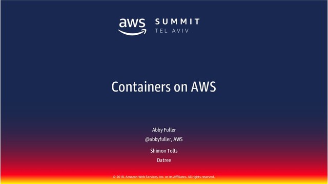 rights reserved. Abby Fuller @abbyfuller, AWS Shimon Tolts Datree Containers on AWS