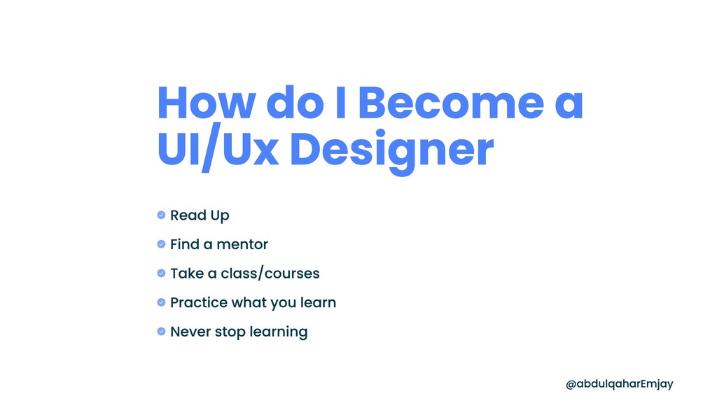 In this presentation, Participants were taken on a journey of who a UX.UI designer does and how to become one.