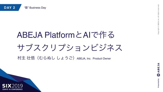 SIX 2019 biz-f-3 「ABEJA PlatformとAIで作るサブスクリプションビジネス」 Shogo Muranushi @ABEJA, Inc.